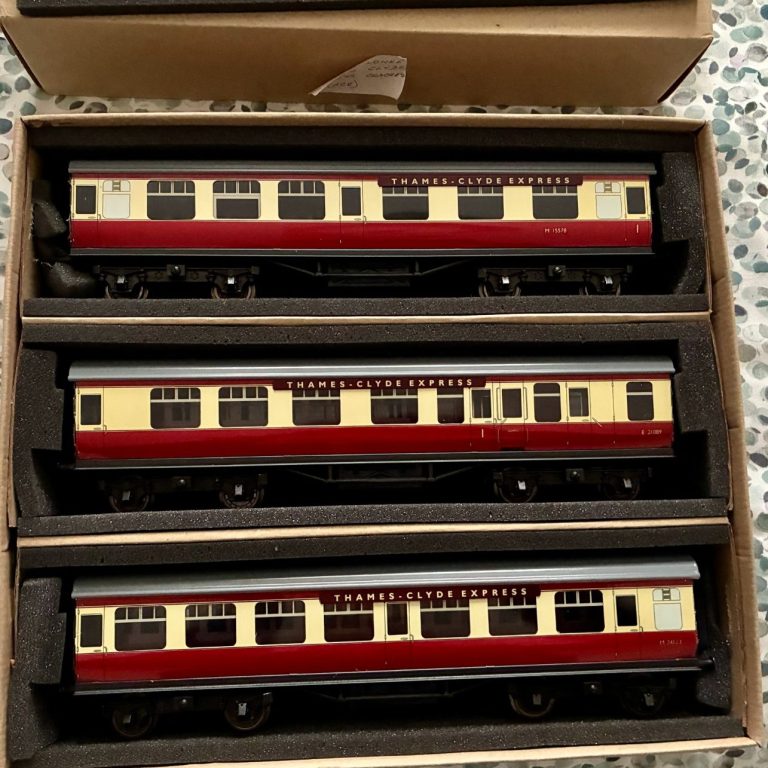 Ace Trains Blood and Custard Thames Clyde Express Coaches E15578, E21089 and M24123 In excellent/near mint condition. Boxed as shown. Price £200.00 - SOLD