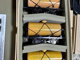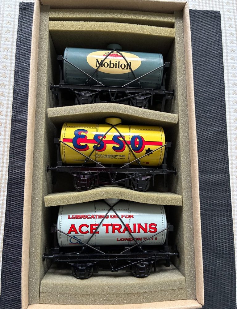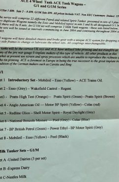 Set 1 consists of Mobiloil, Yellow Esso and ACE Trains Oil wagons. These are all near mint boxed and look like they have never been run.