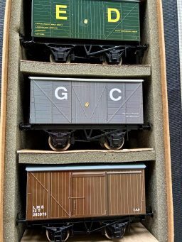There are currently only these three wagons in stock of this description other than in sets, all wagons in near mint condition looking as though they have never been out of the box. Can sell as all 3 together or individually...