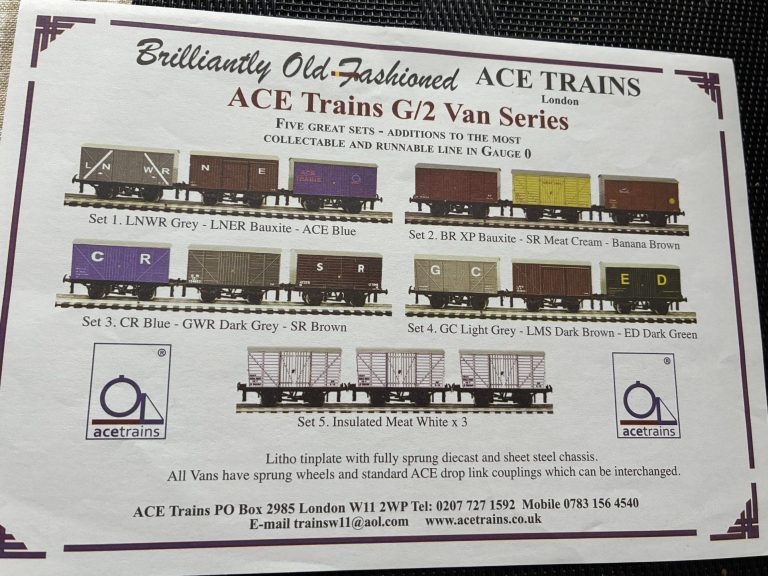 Litho tinplate with fully sprung diecast and sheet steel chassis. All vans have sprung wheels and standard ACE drop link couplings that can be interchanged.