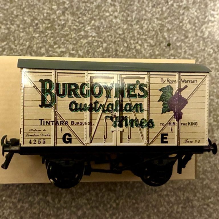 Darstaed "Burgoynes Wines " Advertising Van no 6/500 Limited Edition in Mint condition. Tin printed bodies with die cast chassis Litho tinplate construction. 2/3 Rail running wheels. Excellent collectors edition and not common wagons now to find. (All sold out).