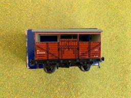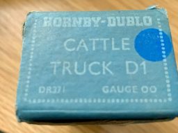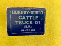 Hornby Cattle Truck D1 B.R. - plain dark blue box. Cosmetically this wagon is excellent condition. The box also is excellent just with the usual scuffs to the edges. Dated 1952