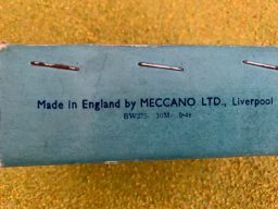 Hornby Dublo Goods Brake Van NE D1 but in a Southern Region box which is pretty rare. Dated 1948. Im sure some collectors will have an interest just in the box as the unboxed wagons come available and sell for around £80 unboxed. Wouldnt it be nice to add a box? The box itself is also in good condition for its age with the usual scuffs to end flaps and edges.