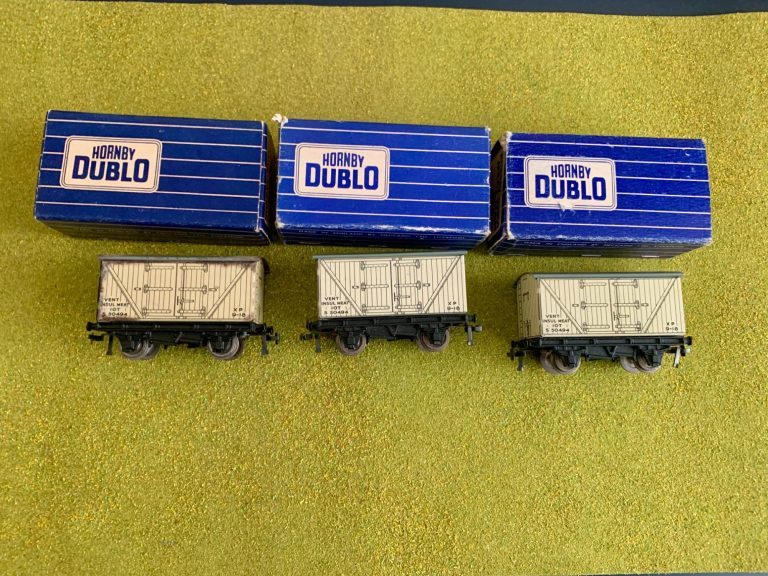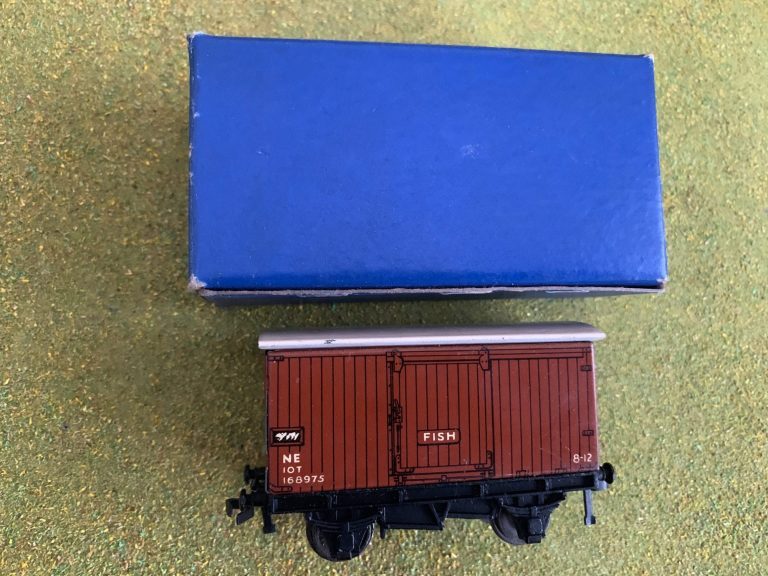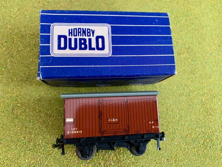Hornby Dublo Fish Van - plain dark blue box. Cosmetically this wagon is excellent condition. The box also is excellent just with the usual scuffs to the edges.