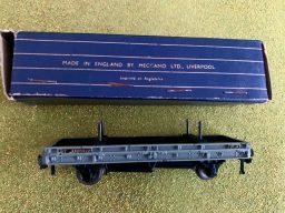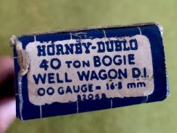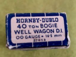 Hornby Dublo 40-Ton Bogie Well Wagon D1 - Item is in very good cosmetic condition and boxed. Cosmetically the wagon is in nice condition and box shows minimal signs of use. The box is really good but with usual minor scuffing to corners and end flaps. One end flap small side is missing but is in the box.
