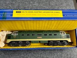 Hornby Dublo Deltic Diesel St Paddy 3 Rail - another very rare item. The loco is in superb condition as is the box - just a piece of sellotape to the corner. For an unknown reason a previous owner has written "damaged" in biro to the front but no reason why. Its fine. The loco runs well ( a video can be supplied on request) and it has recently been serviced.