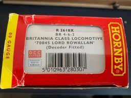 Hornby R2618X Britannia Class Lord Rowallan - we acquired this from the estate and collection of someone who never got a chance to run this loco. Its classed as mint in box and is a superb example. DCC is fitted to this loco. This looks like it has never been out of its box ( except to photograph) (G)