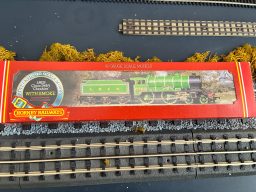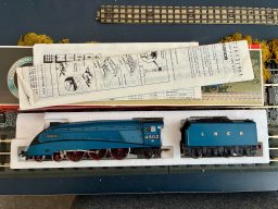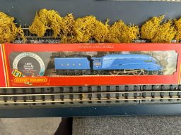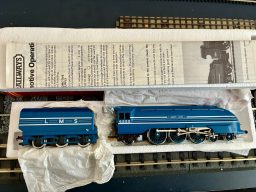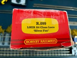 Hornby R099 Silver Fox A4 - in excellent condition. Runs well both forwards and in reverse.Comes with all original paperwork dated 1985 and it looks like the loco has probably rarely been out of its box. The box ends have been repaired with sellotape. The item has been in storage for 30 years so could do with a routine service.