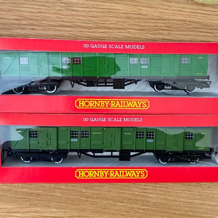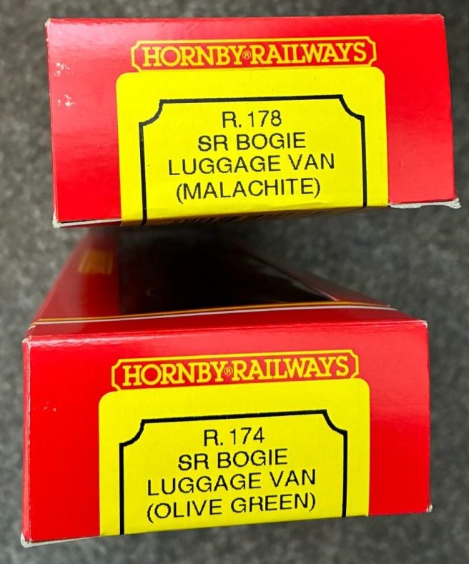 Hornby R174 and R178 SR Bogie Luggage Vans ( in Olive Green and Malachite )