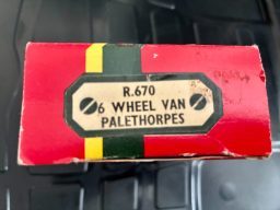 Hornby R670 6 Wheel Van Palethorpes - slighgt damage to perspex on box front.