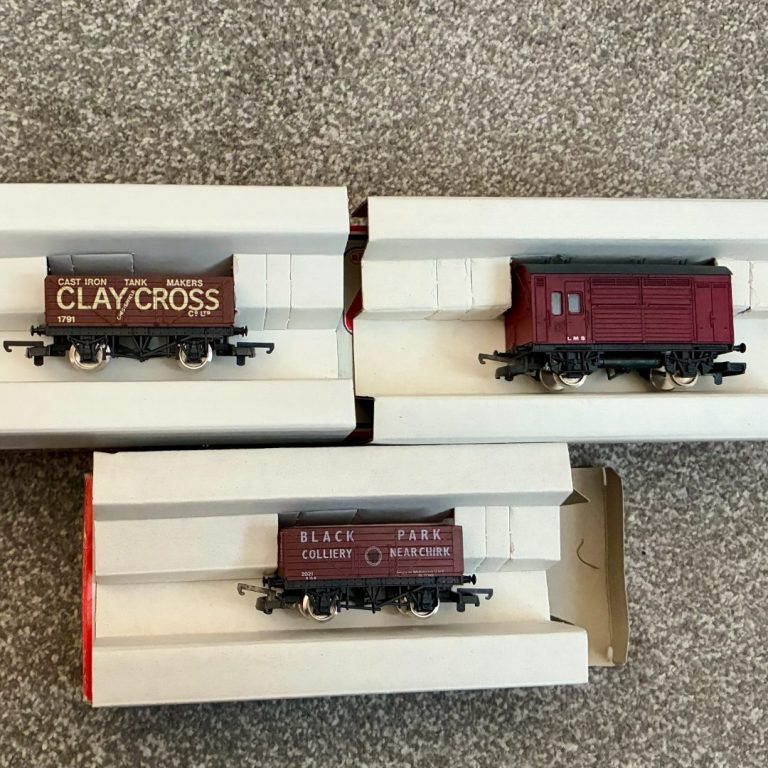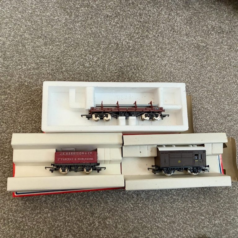 Lima Bogie Bolster Wagon With Load, 7-Plank Wagon Harrison, LMS Horse Box Wagon (3 Wagons)