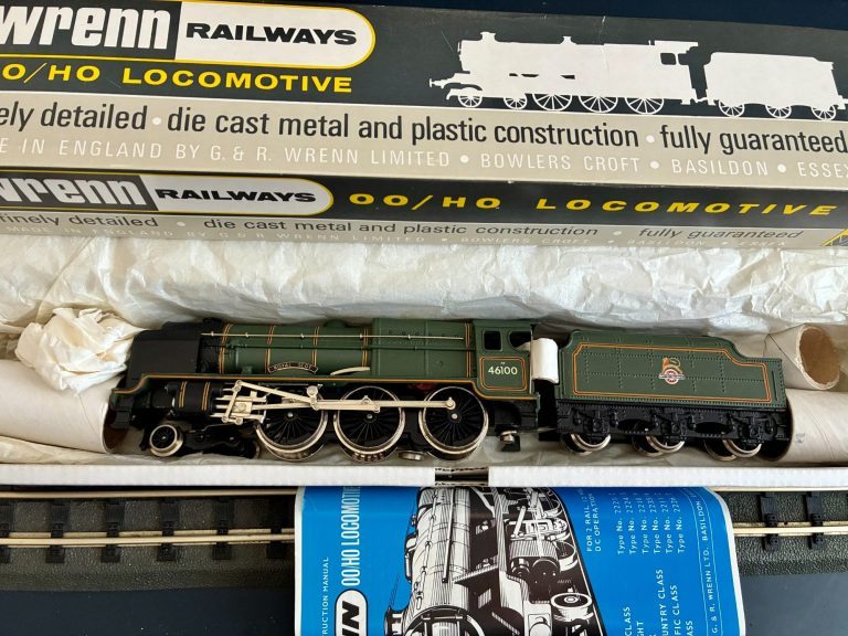Very rare near mint example of Wrenn W2298 loco in BR Green named Royal Scot running number 46100 and being one of only 85 produced in P4. Hammer price of one sold through Vectis was £1000 in 2024. It comes with its instructions, and all packing materials. It has never been run except for testing. Packer number 90416. Its been in storage for many many years so could do with a light service.