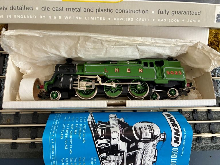 This Wrenn loco comes with its instructions, and packing materials.It looks like it has hardly been run except for testing. Packing number 05625 on the box underside. Its been in storage for many many years and this loco is currently non-running but the loco tries to go but just doesnt manage it so its requiring a service. Running Number 9025. This is one of only 164 produced so a highly rare and desirable loco and is priced accordingly.