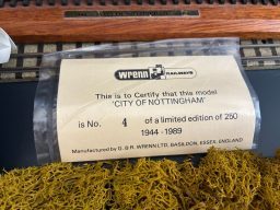 This Wrenn Limited Edition loco No4 comes with its certificate, its wooden engraved plynth, and all packing materials.It has never been run except for testing. Packing number 90312 making this an early model. Its been in storage for many many years so could do with a light service. Its believed only 182 of the planned 250 Limited Edition were actually produced. Production of this model commenced in March 1990.