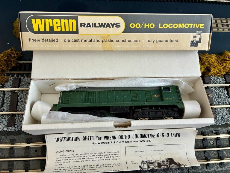 This Wrenn loco comes with its instructions, and all packing materials.It has hardly been run except for testing and minor use. Packing number 3 - no other visible number. Marked down from mint due to sticker removal scar on box front.Its been in storage for many many years so could do with a light service.